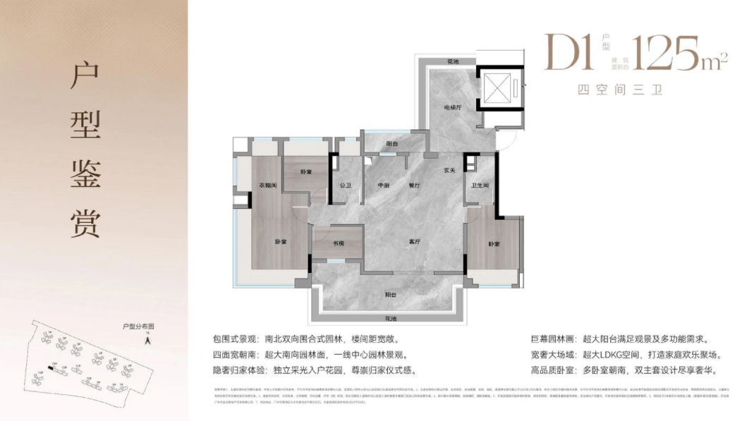 专梯入户设想,自带典礼感。只要您和您的家人才能达到口,私密性极佳。16层的低楼层设想,栖身更舒服,避免了高层的风噪和眩晕感。南北双园林景不雅,推窗即景,满目葱茏。125㎡户型更是做到了四房双从套,长辈取年轻人各自具有空间,现私性获得最大程度的。大面宽设想搭配南北对流,栖身舒服度堪比大平层。无论是客堂的开间,仍是卧室的进深,都达到了豪宅的尺度。住正在这里,不只仅是栖身,更是一种身份的彰显,一种糊口立场的表达。